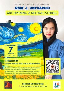 RAW & UNFRAMED is a powerful exhibition of unframed canvas works created by more than 20 artists currently in detention. Working in extremely constrained conditions, these artists express hope, resilience and lived experience through raw, honest visual language. Art created with heart and profound humanity.UPCOMING EXHIBITIONS